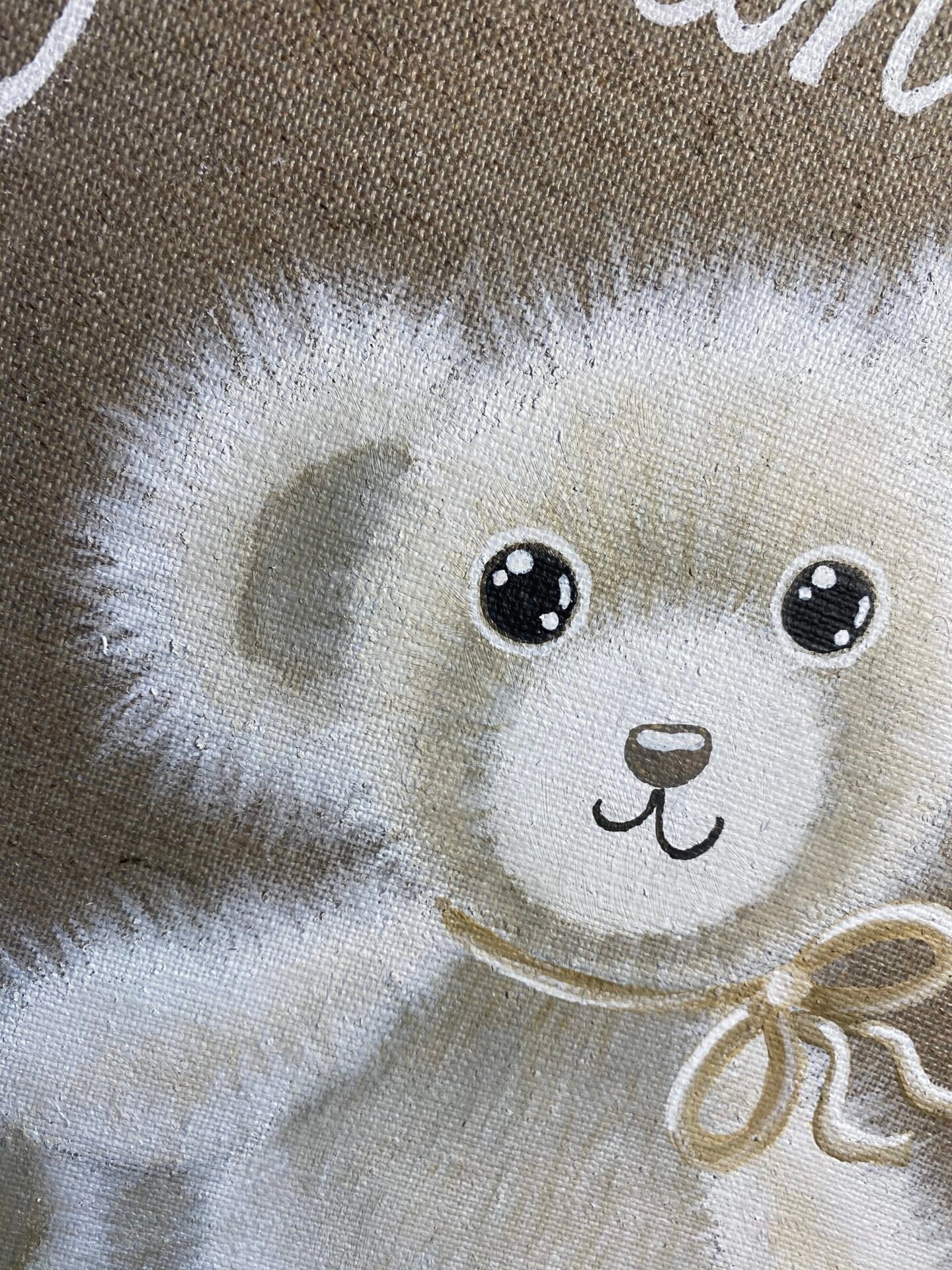 Ce petit ours avec un ballon de Handball (clin d’oeil destiné aux parents) a été peint pour le petit Julian dans des tons naturels qui se marieront parfaitement avec la décoration de sa chambre. Un cadeau de naissance unique et personnalisé qu’on garde precieusement, et qui se retrouve souvent dans la chambre de la génération suivante.